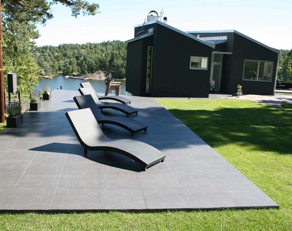 在瑞典花园,葱绿的草地上直接铺设唯格2CM厚原石系列产品GP006,配合着同样颇具质感的流线型石质沙滩椅,简单却舒心,漫享午后花园时光。